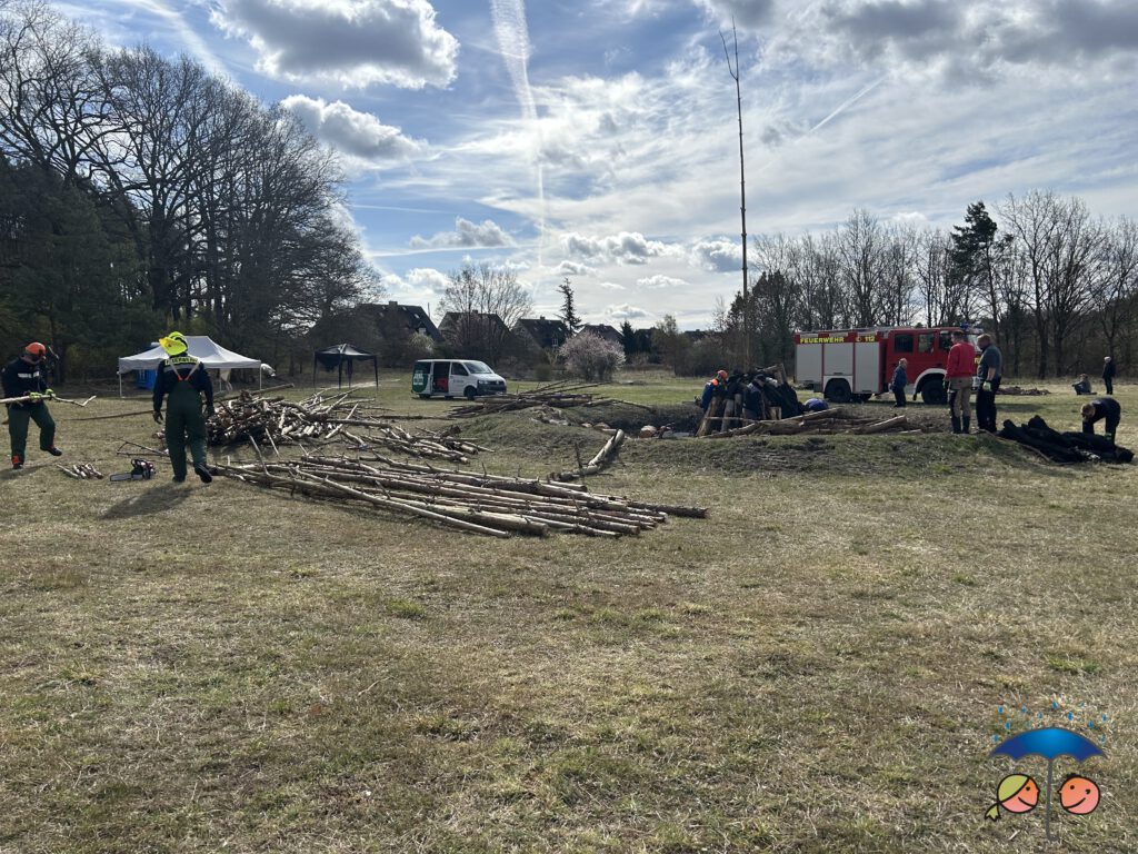 Am 21.03.2026 waren viel fleißige Helfer vor Ort um das Osterfeuer vorzubereiten. Mitgeholfen haben einige vom Verein Regenkinder e.V., der Freiwilligen Feuerwehr Potsdam Zentrum und weiter Personen, die immer wieder dabei sind um zu helfen.